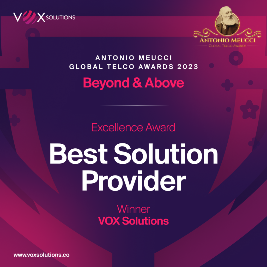 VOX Solutions has been honored with the prestigious title of “Best Solution Provider” at the Antonio Meucci Global Telco Awards 2023!