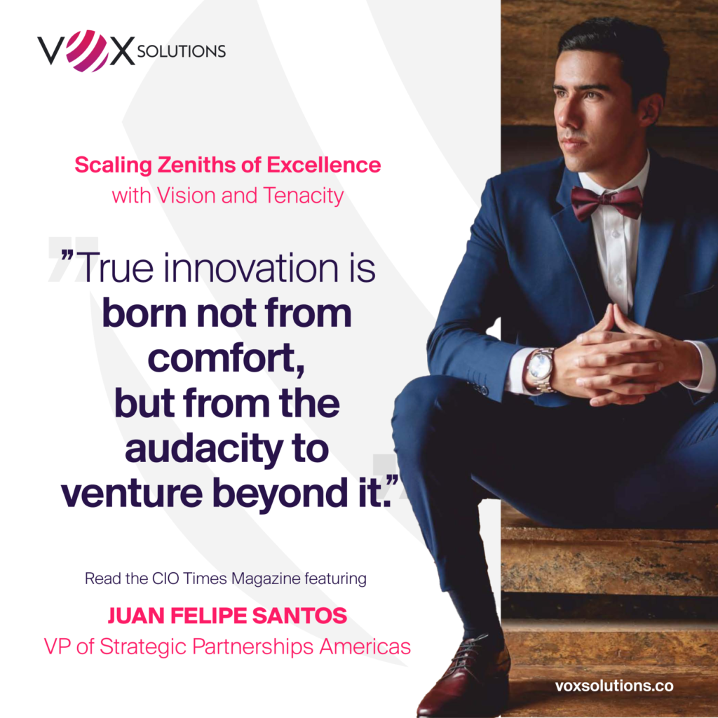 Juan Felipe Santos, the Vice President of Strategic Partnerships – Americas at VOX SOLUTIONS exemplifies such leadership with his unique vision and relentless drive. Juan’s story is one of turning challenges into steppingstones, continually pushing the boundaries of what’s possible in the telecommunications industry.