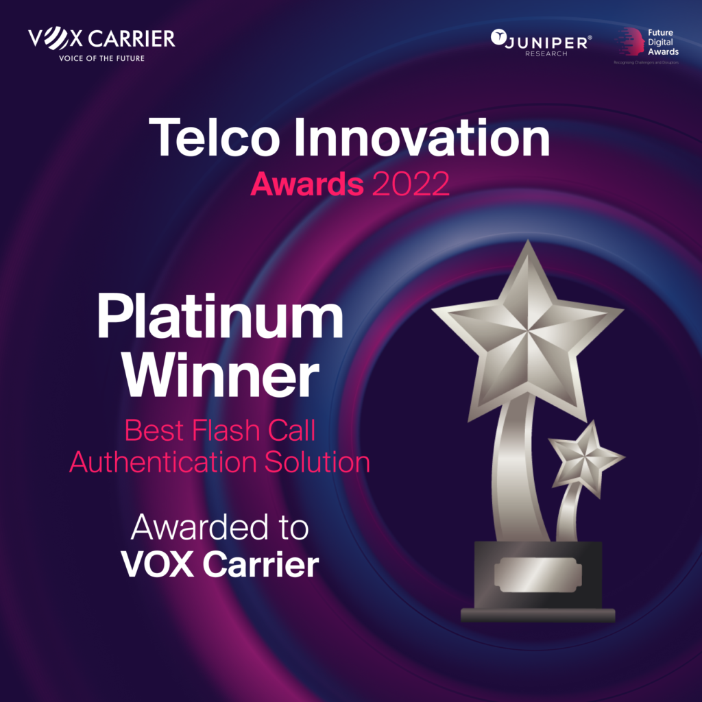 We are delighted to be a Platinum Winner at Juniper Future Digital Awards for our innovation in Flash Calling & Voice Firewall!