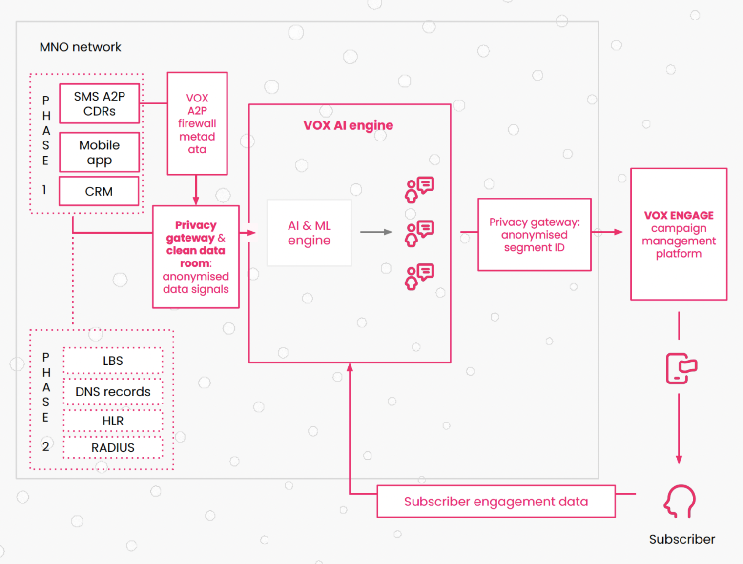 VOX Solutions deploys a Privacy Gateway directly within your infrastructure, and we hand you over the encryption keys. This ensures that while we monetize insights, your raw subscriber is always pseudonymised before analysis, and data never leaves your perimeter. We process data on-premise, anonymizing and tokenizing Personal Identifiable Information (PII) before it ever touches the advertising ecosystem.