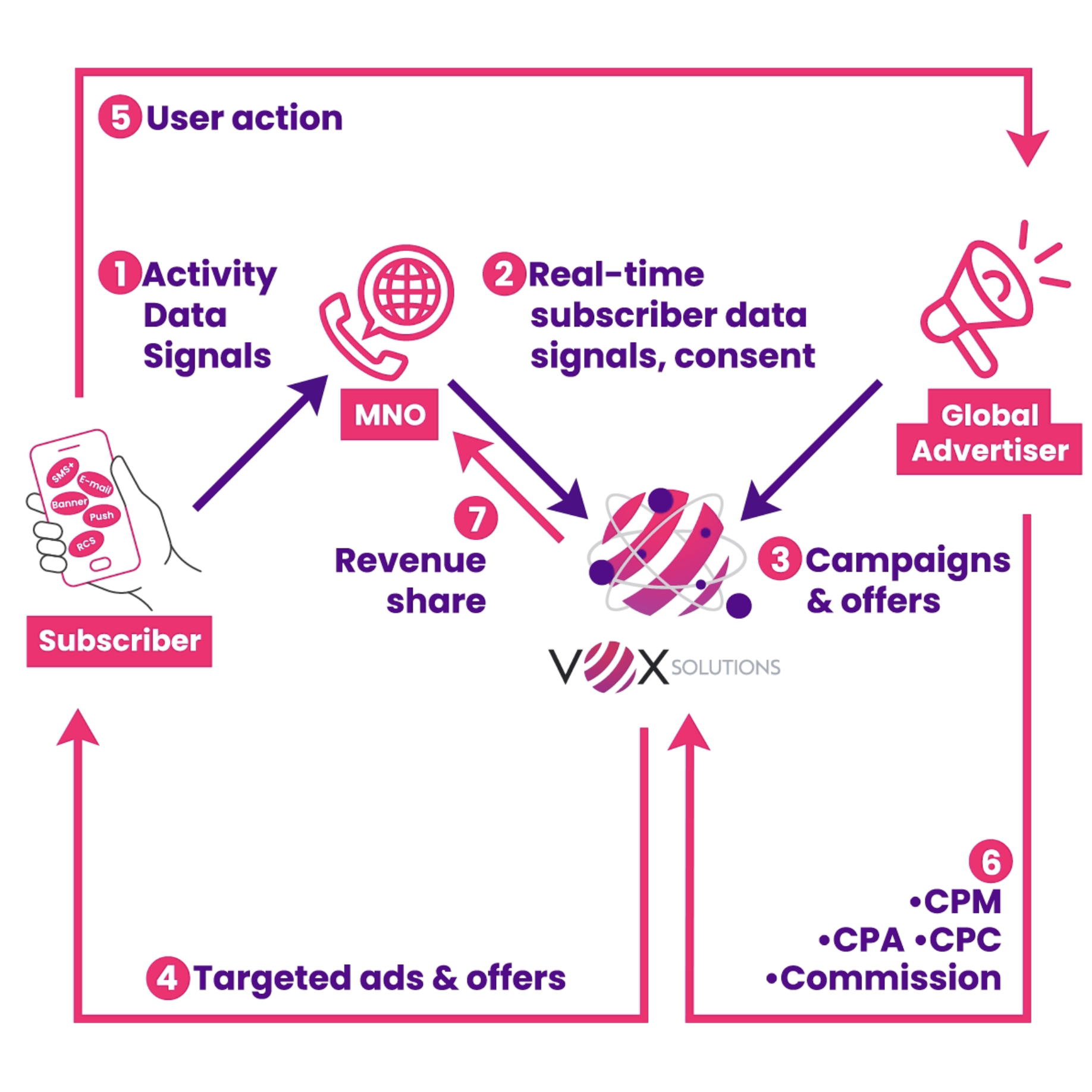 Mobile Network Operators hold the most valuable asset in the digital economy: verified, deterministic subscriber data. Yet, traditional revenue streams are under pressure. VOX Solutions acts as the catalyst to reverse this trend.