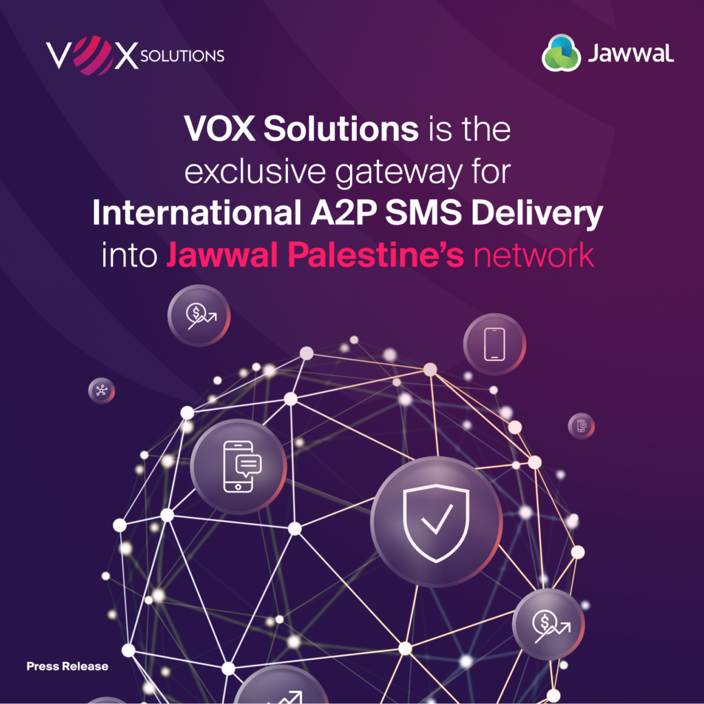 “Banking, travel, transportation, healthcare, and other verticals are increasingly using A2P messages to send notice, authentication, and confirmations to their customers. For both companies and customers, high quality and timely messaging delivery is a must” says Malak Ziadni, Marketing Director at Jawwal. “This exclusive partnership with Vox Solutions, to terminate the International A2P traffic in our network, guarantees a reliable, high quality and secure delivery of A2P services for any regional or global brand.”